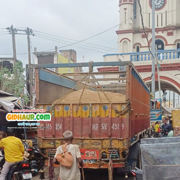 गिद्धौर/जमुई (Gidhaur/Jamui), 24 अक्टूबर 2024, गुरुवार : गिद्धौर बाजार के दुकानदारों ने दिन में बाजार की तंग सड़कों से बालू लाद कर निकल रहे ट्रकों के आवागमन पर रोक लगाने की मांग डीएम अभिलाषा शर्मा से की है। बता दें कि गिद्धौर बाजार होकर कोल्हुआ, दाबिल, गरसंडा होकर जमुई को जोड़ने वाली बायपास सड़क है। महीनों पूर्व से इस बायपास सड़क पर गिद्धौर बाजार होकर बानपुर, दाबिल, चांगोडीह व कोल्हुआ गांव में बने बालू डंप यार्ड पर सैंकड़ो की संख्या में बालू लादने मालवाहक ट्रक पहुंचते हैं।